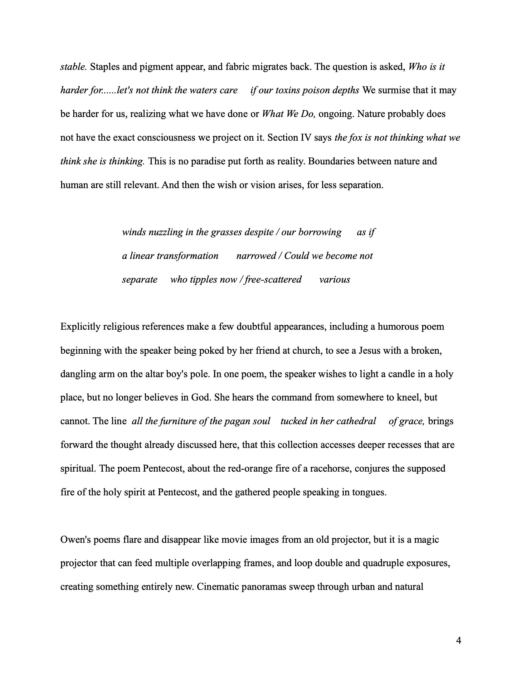 Jenny Grassl lives in Cambridge, Massachusetts. Her poems have appeared or are forthcoming in: Ocean State Review, Rogue Agent, the Boston Review, Tupelo Quarterly, Bennington Review, Lana Turner Journal, Inverted Syntax, Puerto Del Sol, Massachusetts Review, Heavy Feather Review, and others. Her poetry was featured in a Best of American Poetry blog. Her first book, Magicholia , will be published by 3: A Taos Press in 2024. Her reviews have appeared in Lit Pub, Tupelo Quarterly, and Compulsive Reader.